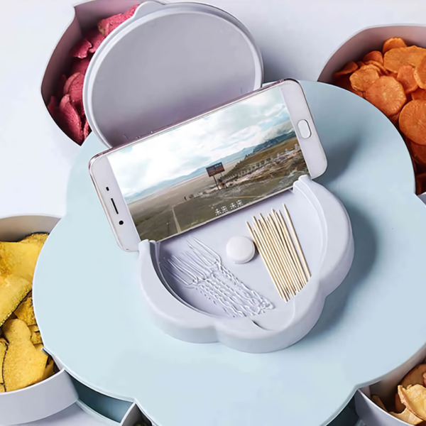 🌟 Περιστρέψτε το καπάκι για να αποκαλύψετε διαμερίσματα ιδανικά για μπισκότα, φρούτα και άλλα.